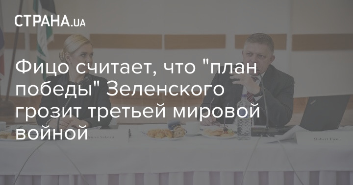 Пермьер-министр Словакии Роберт Фицо считает, что "план победы", предлагаемый президентом Украины Владимиром Зеленским, может привести к глобальному военному конфликту.