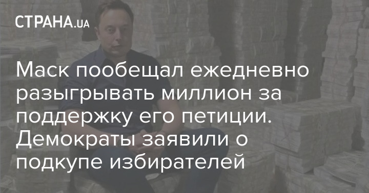 Американский бизнесмен Илон Маск пообещал разыгрывать по миллиону долларов каждый день среди тех, кто подпишет его онлайн-петицию.
