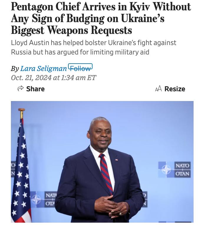 Издание The Wall Street Journal сообщает, что он приехал "с сообщением о твердой приверженности США военным усилиям Украины, но без новой военной помощи или разрешения на использование ракет большой дальности внутри России".
