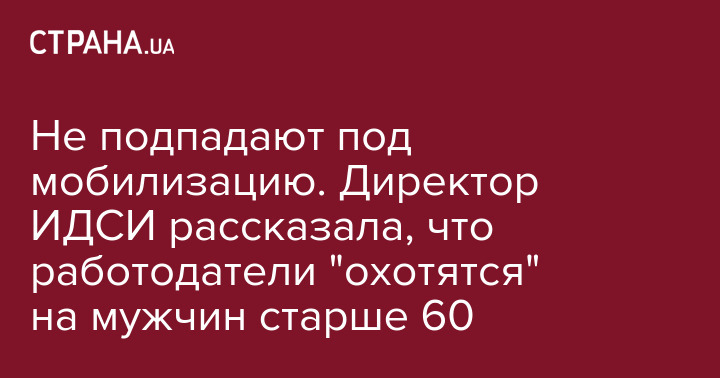 Украинские работодатели "охотятся" на мужчин старше 60, потому что они не подпадают под мобилизацию. Об этом рассказала Der Spiegel директор Института демографии и социальных исследований Элла Либанова.