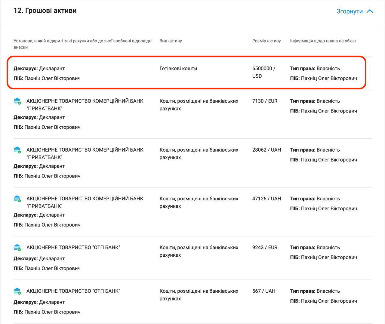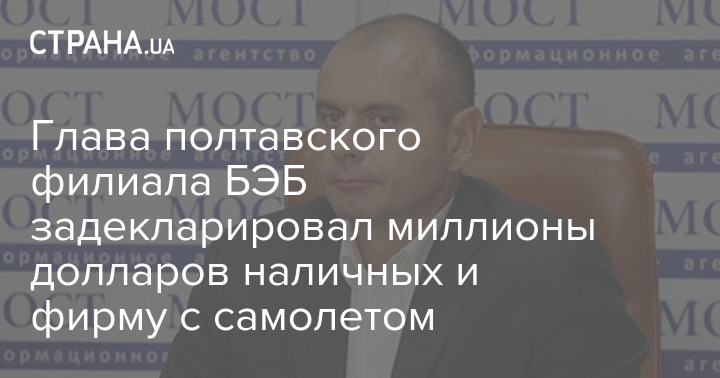 Руководитель территориального управления Бюро экономической безопасности (БЭБ) в Полтавской области Олег Пахниц задекларировал накопления в наличной валюте в размере 6,5 миллиона долларов, сельхозпредприятие, которому принадлежит одномоторный самолет Socata TB 20 GT, а также десятки земельных участков, квартиры и дом площадью 241,7 квадратных метра.
