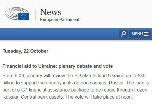 13:31 Европарламент одобрил кредит Украине в размере 35 миллиардов евро - за счет доходов от замороженных российских активов.