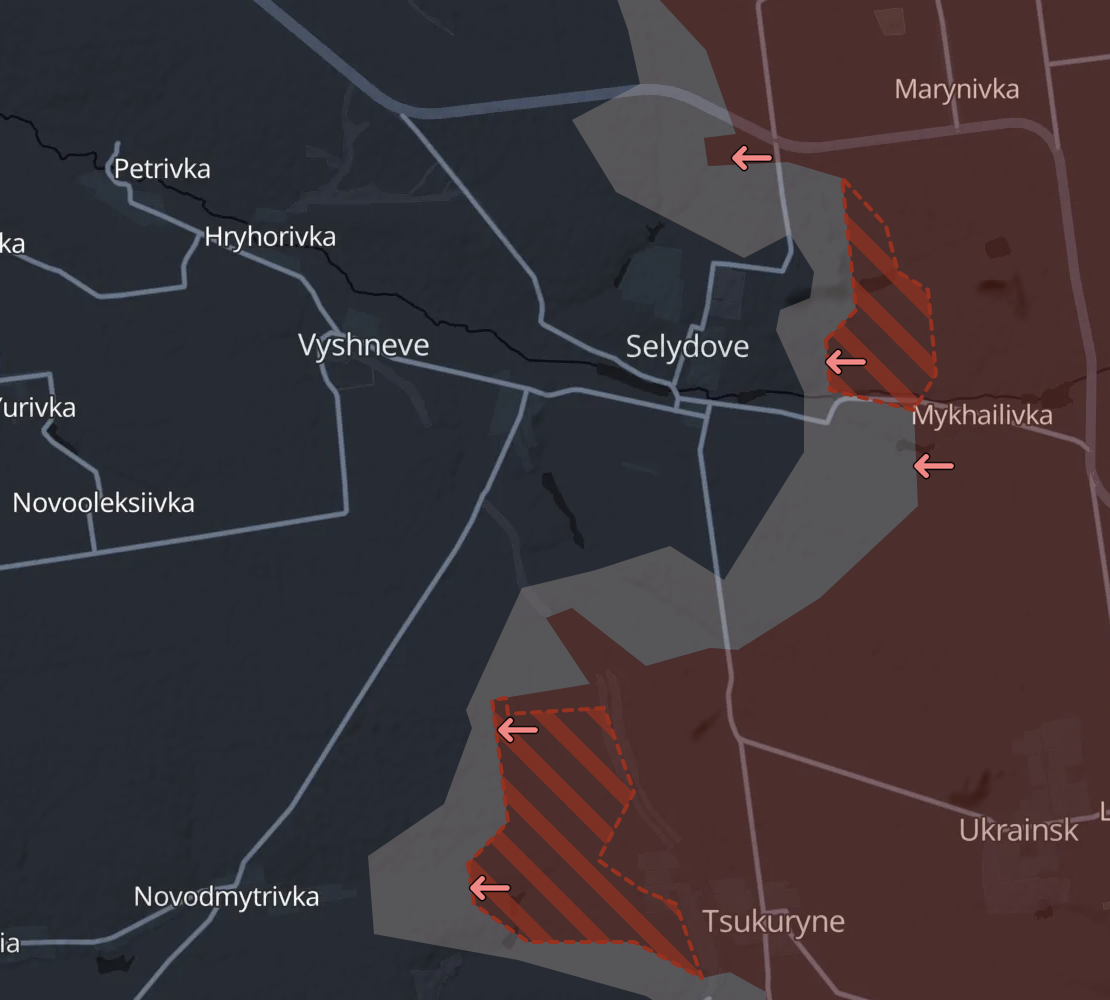 Кроме того, DeepState показал крупные продвижения РФ к западу от Цукурино (в район Новодмитровки), а также в районе Горняка, где уменьшилось вклинение ВСУ в российские позиции (район Зоряного).