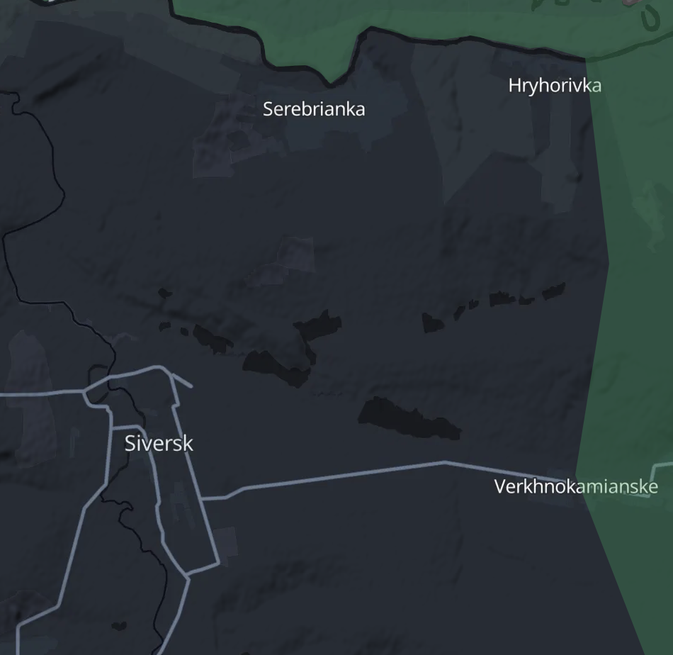 Минобороны России заявило сегодня о захвате села Серебрянка в трех километрах от Северска. Украина этой информации не подтверждала. По карте Deep State, деревня находится даже не в зоне боев.