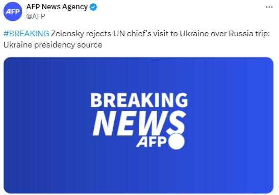 Владимир Зеленский отказал генеральному секретарю ООН Антониу Гутерришу в визите в Украину из-за того, что тот посетил саммит БРИКС в России.