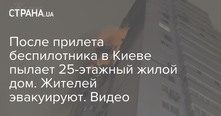 Сегодня вечером в Киеве прогремели взрывы. В результате попадания дрона в 25-этажный жилой дом начался пожар. Проводится эвакуация жильцов.