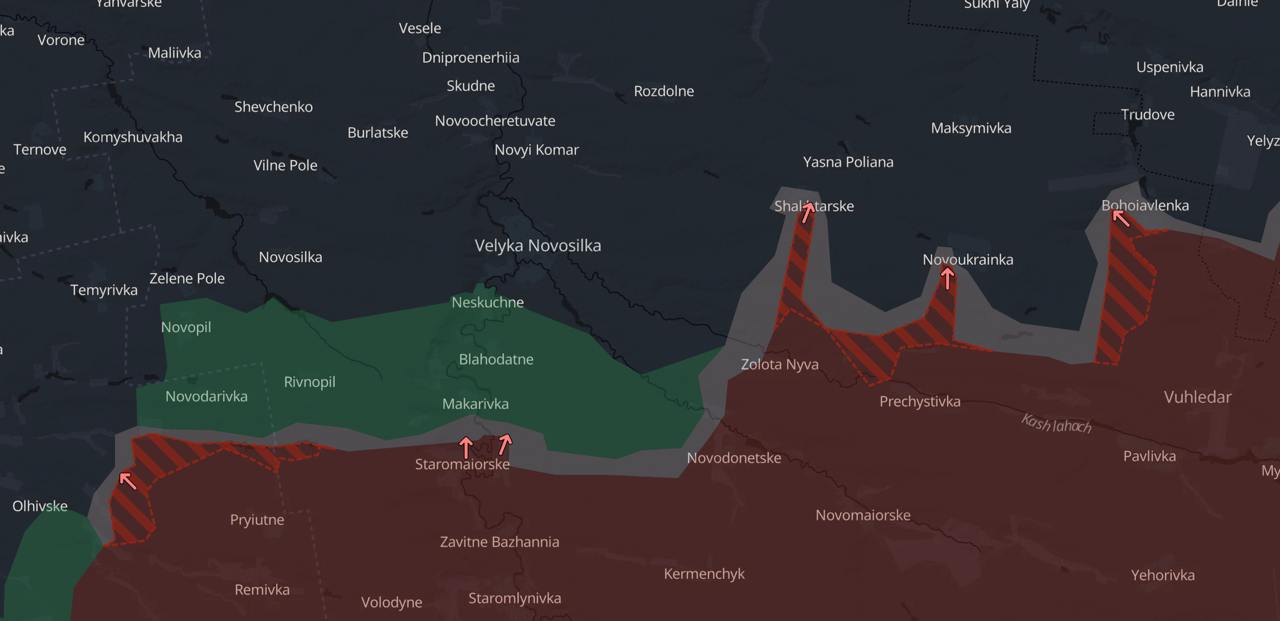 Севернее Угледара россияне вошли в Богоявленку, а западнее Великой Новоселки захватили Левадное (Времьевский выступ, Запорожская область).