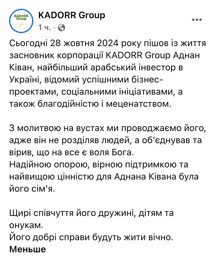 Сегодня в Одессе умер известный украинский предприниматель сирийского происхождения 61-летний Аднан Киван.