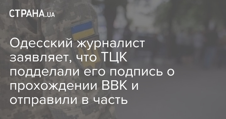 Одесский журналист заявляет, что ТЦК подделали его подпись о прохождении ВВК и отправили в часть