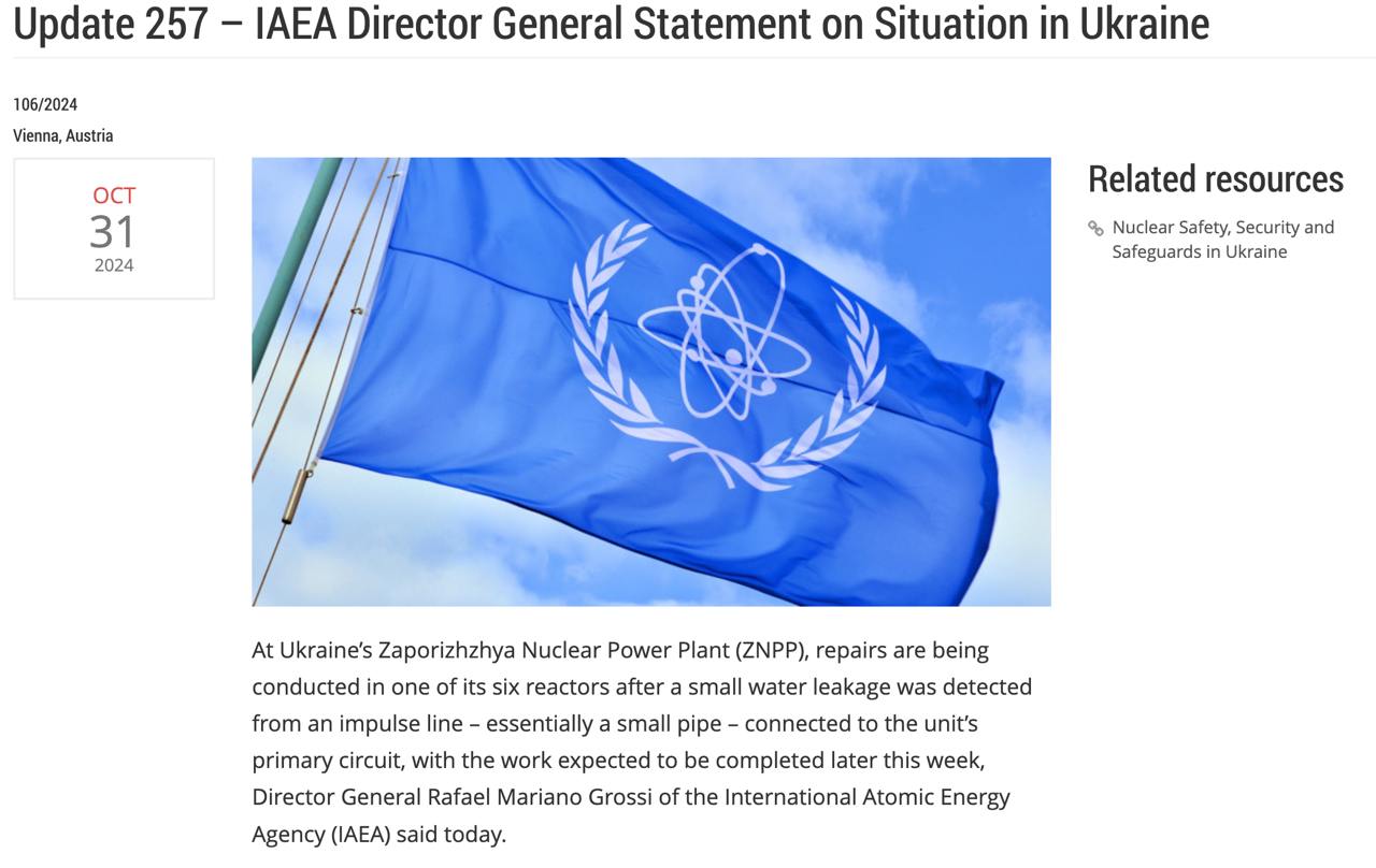 Об этом сообщается в отчете Международного агентства по атомной энергии (МАГАТЭ) от 31 октября, опубликованном на сайте организации.