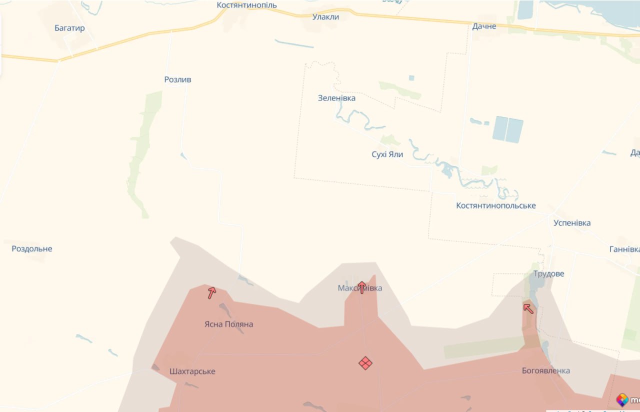 • смогли продвинуться северо-западнее Богоявленки, тем самым перекрывая трассу до Успеновки, и имеют прямой выход к Константинопольскому.