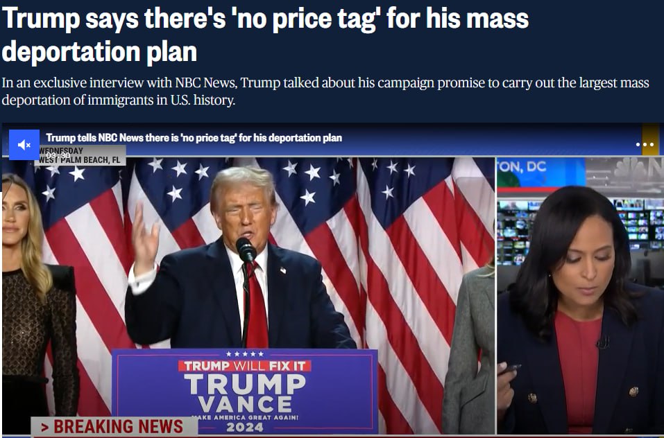 Об этом победитель президентских выборов в США сказал в телефонном интервью NBC.