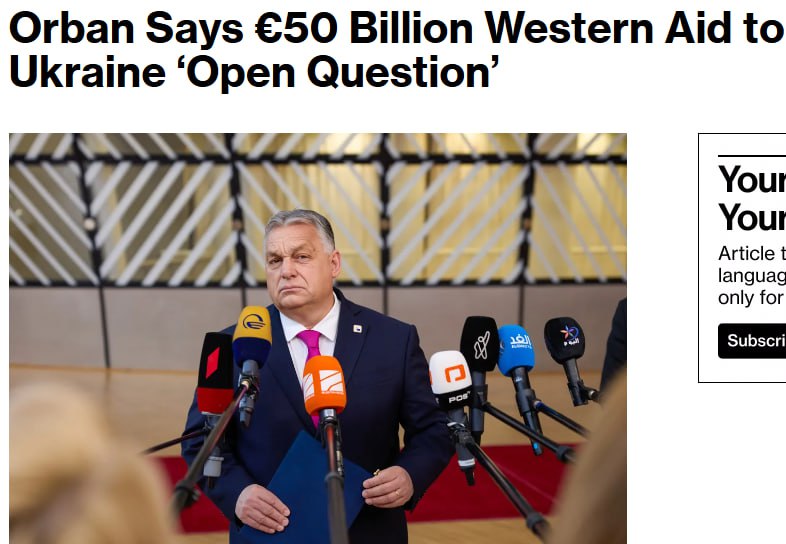 Незадолго до этого сообщалось, что Венгрия заблокирует выделение Украине кредита на 50 миллиардов евро
