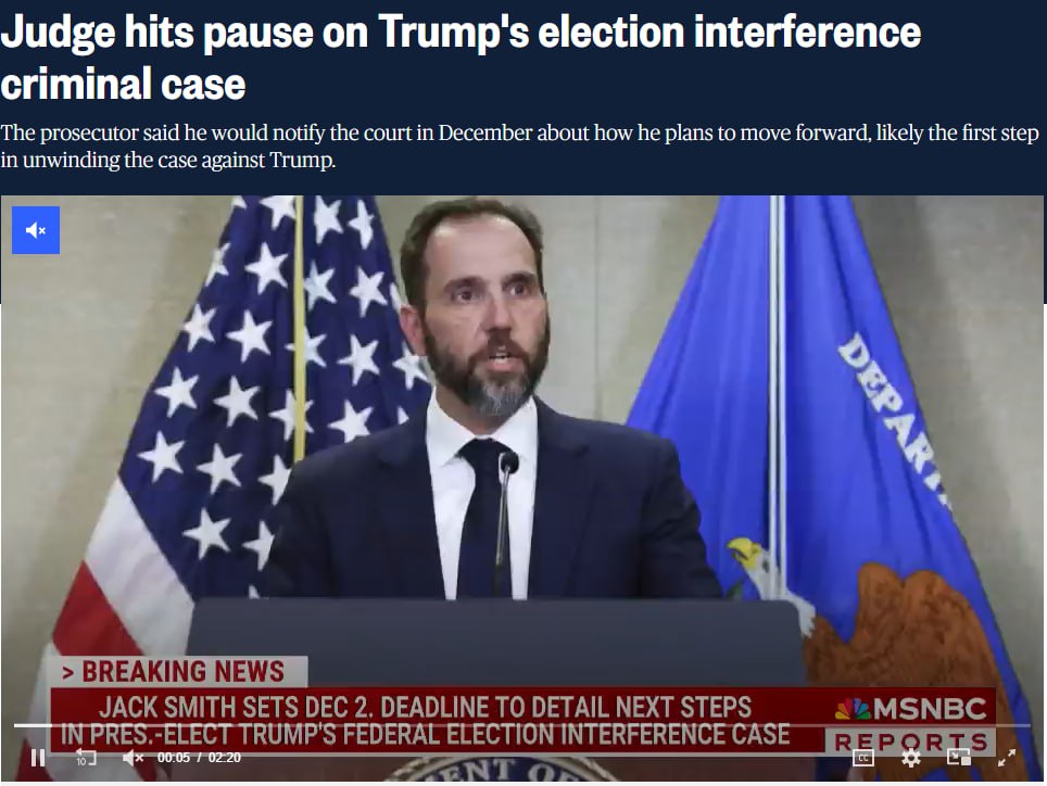 Специальный прокурор Джек Смит попросил федерального судью Таню Чуткан приостановить уголовное дело Дональда Трампа о штурме Капитолия 6 января 2021 года, чтобы его офис мог оценить, как двигаться дальше, когда Трамп вернется на пост президента.