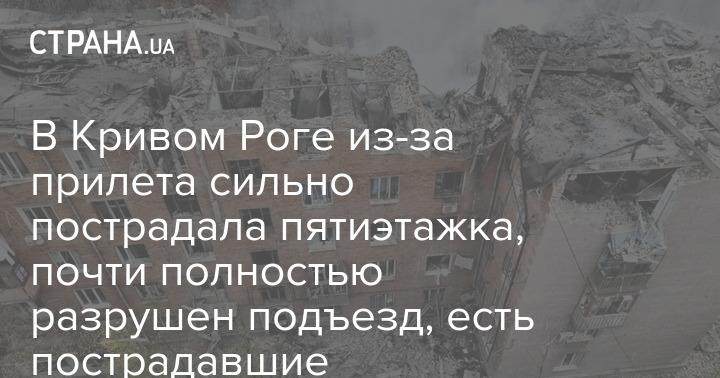 В Кривом Роге из-за прилета сильно пострадала пятиэтажка, почти полностью разрушен подъезд, есть пострадавшие