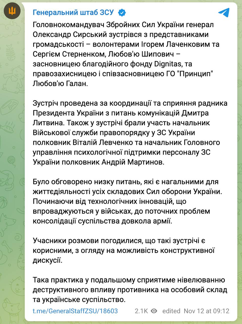После этого Сырский провёл со Стерненко встречу. В официальном заявлении Генштаба ВСУ по поводу этой встречи тема с розыском Стерненко не поднималась.