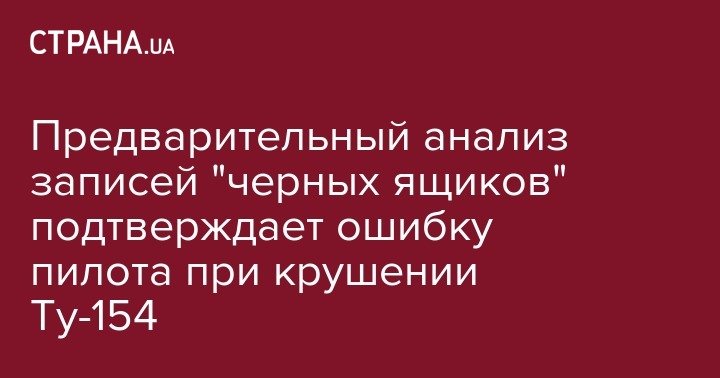 Специалисты центра ВВС Минобороны провели предварительный анализ записей одного из бортовых самописцев самолета Ту-154, потерпевшего крушение 25 декабря в Черном море в районе Сочи, выводы подтверждают версию об ошибке пилотирования. Об этом сообщает "Интерфакс АВН"