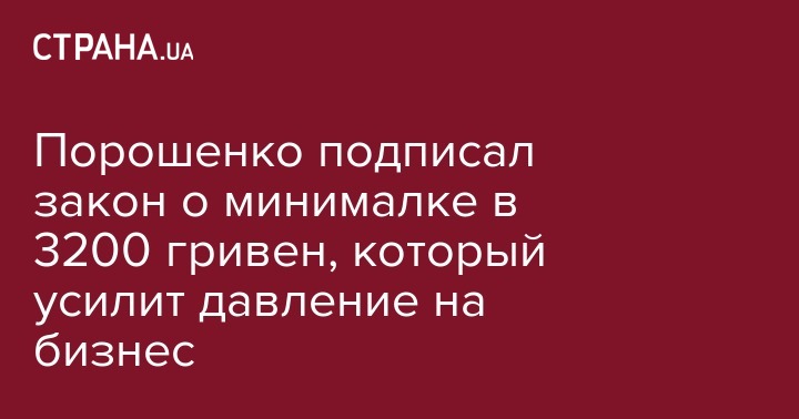Порошенко подписал закон о минималке в 3200 гривен, который усилит давление на бизнес