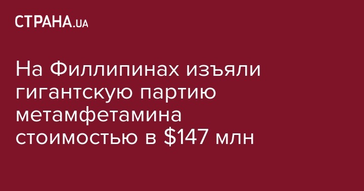 Власти Филиппин сообщают об изъятии тонны наркотика метамфетамина на общую сумму примерно в $147 млн, что стало крупнейшей изъятой партией дурмана в истории страны.