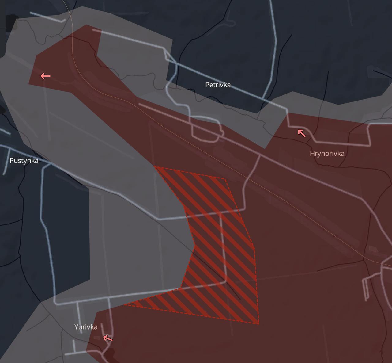 8.38 Россияне продолжают продвигаться в Часове Яре, сообщает украинский военный паблик Deep State.