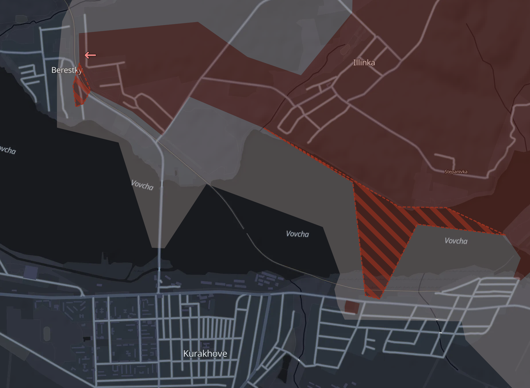 По данным украинского военного с позывным "Мучной", Берестки уже практически полностью под контролем РФ. Карта Deep State это подтверждает.