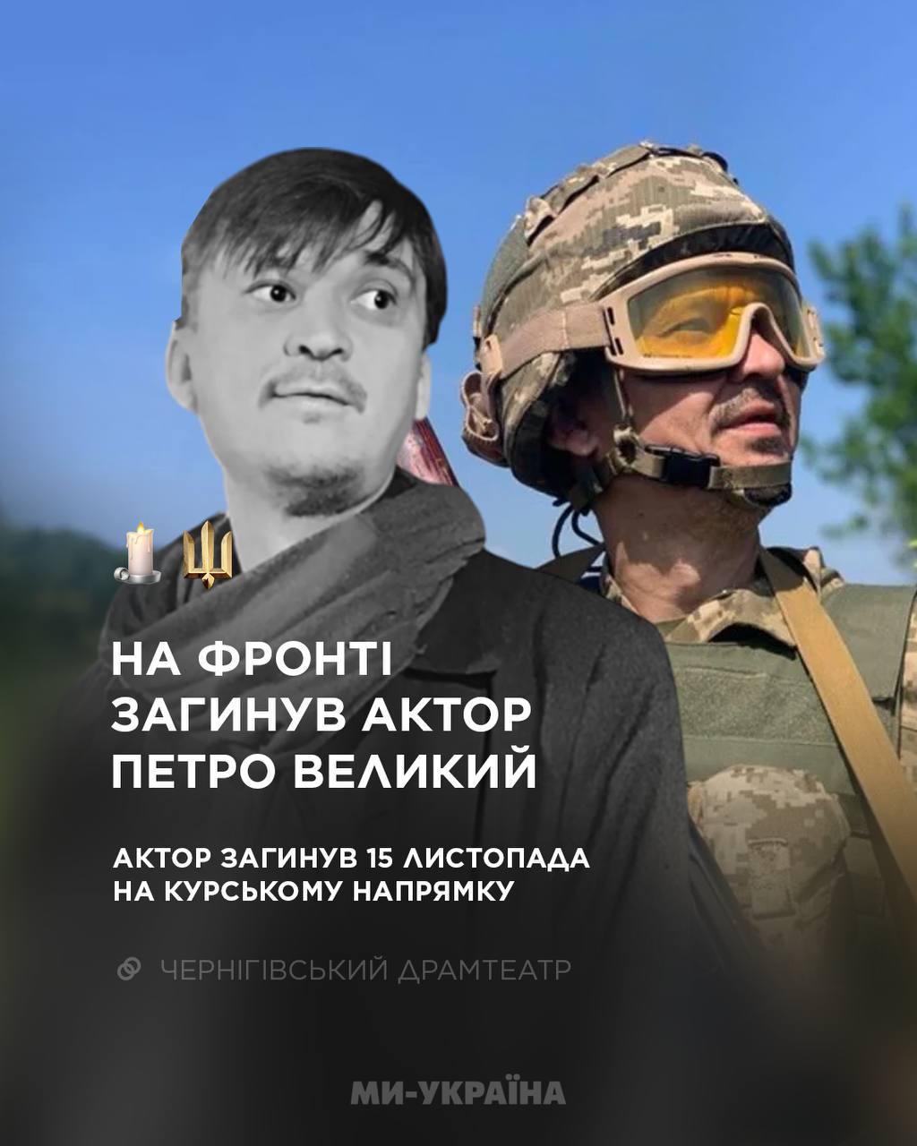 12.55 На фронте в Курской области погиб актер Петр Великий.