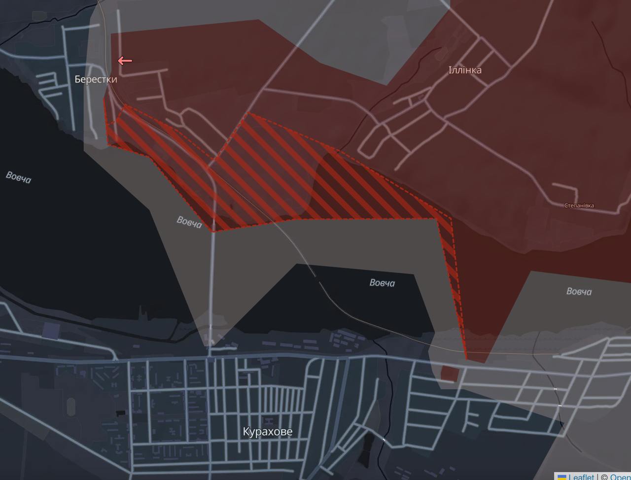 На карте Deep State указано продвижение РФ восточнее этого участка, на северном крае плацдарма ВСУ.