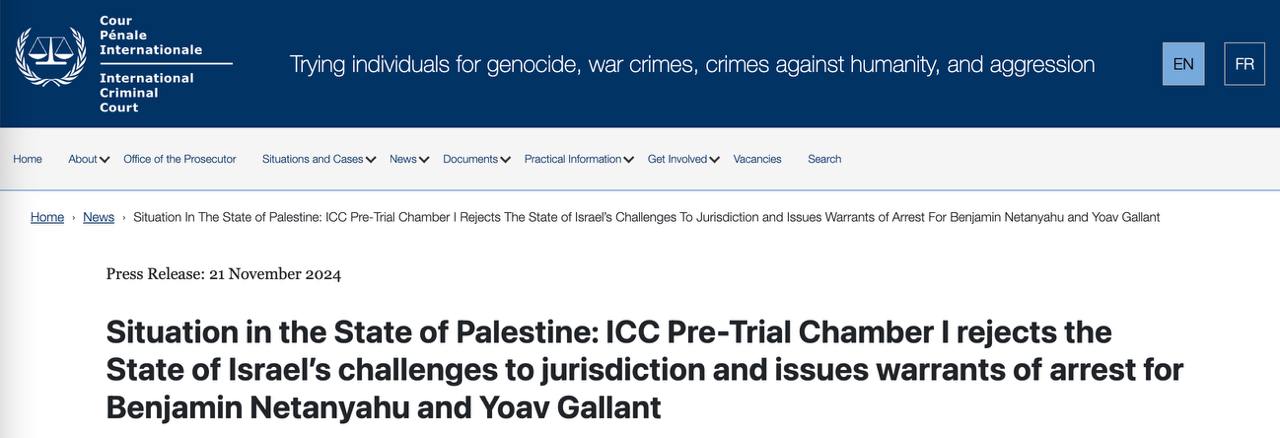 Международный уголовный суд (МУС) выдал ордер на арест премьер-министра Израиля Биньямина Нетаньяху и бывшего министра обороны Йоава Галанта за "преступления против человечности и военные преступления".