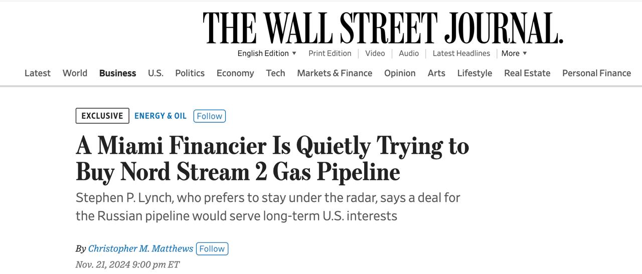 Заинтересованность высказал бизнесмен из Флориды Стивен Линч. Ожидается, что газопровод выставят на торги в рамках процедуры банкротства в Швейцарии. Текущая запланированная дата - январь 2025.