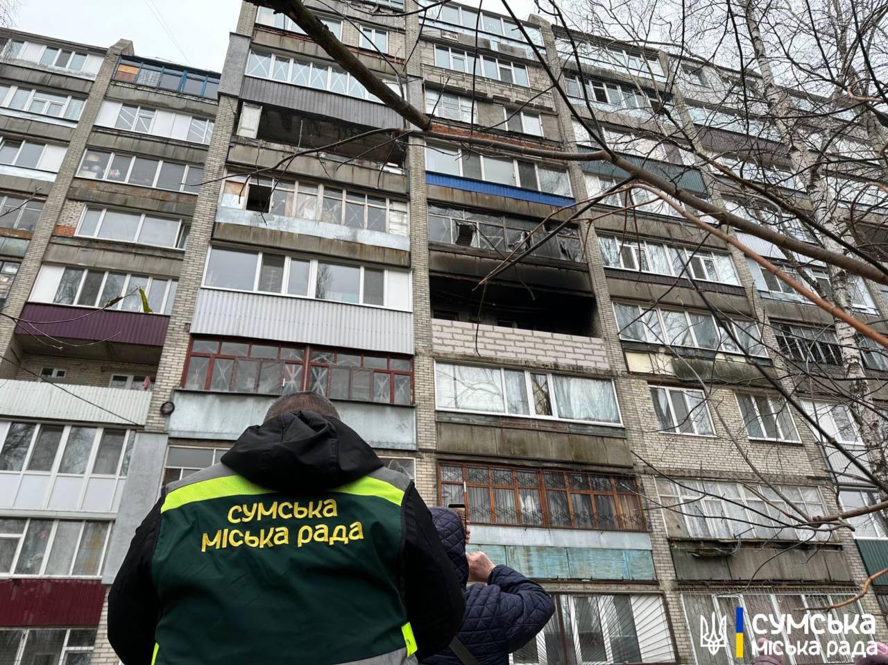 13.23 В Сумах начался пожар в одной из многоэтажек после взрывов, сообщают местные паблики.