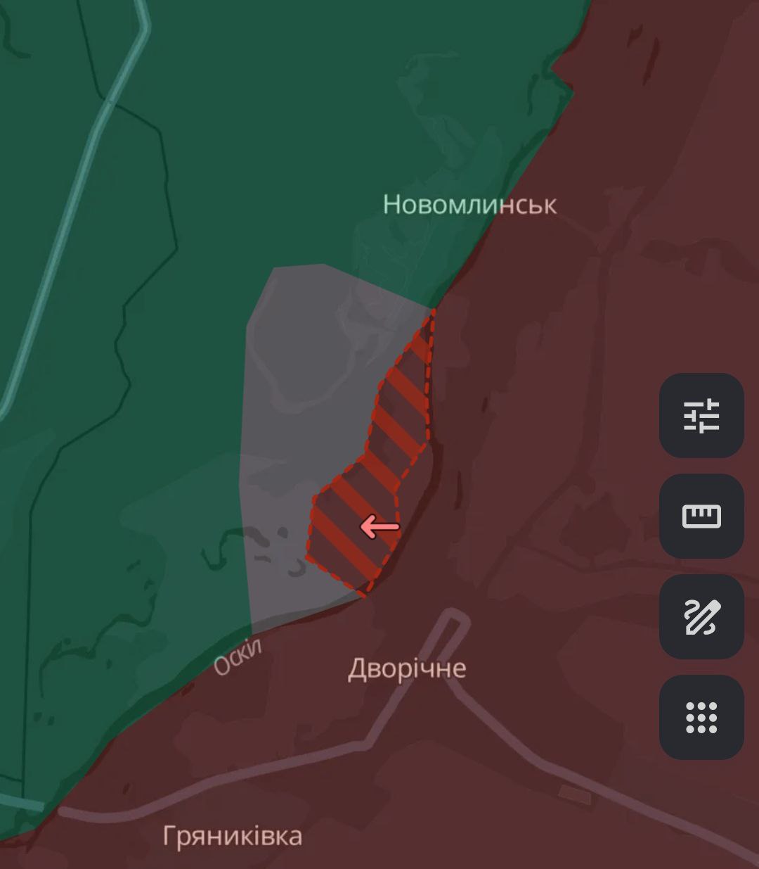 7.57 Россияне расширили свой плацдарм на левом берегу реки Оскол севернее Купянска.