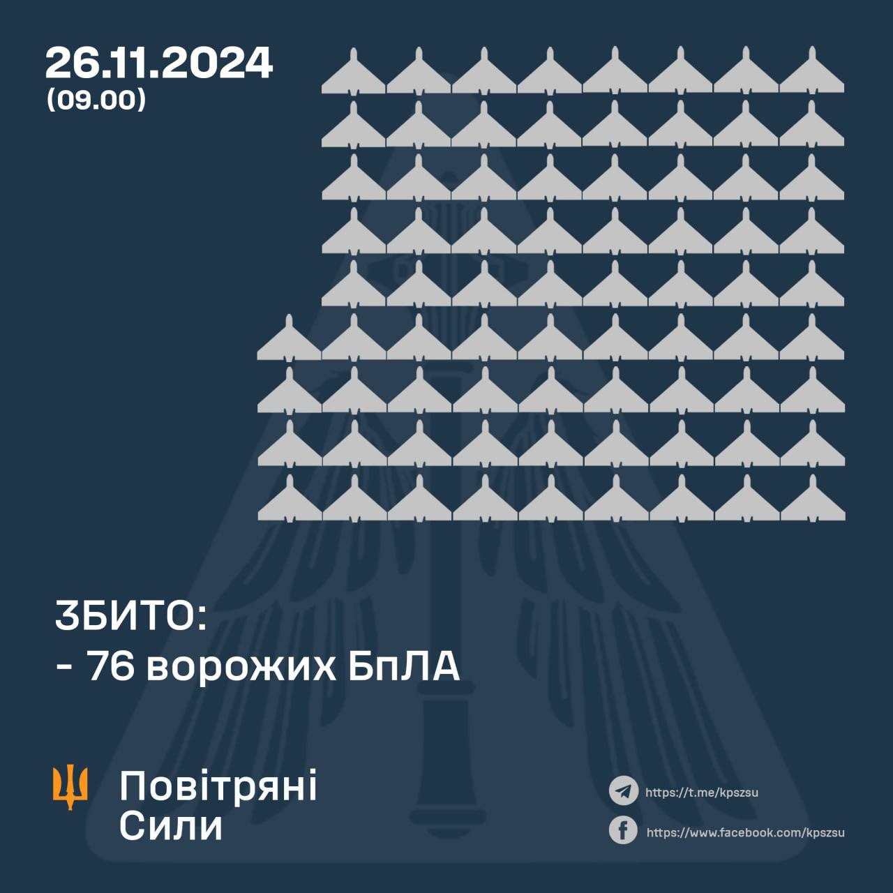 Сегодня было запущено рекордное количество - 188 "Шахедов", из которых сбить удалось 76.