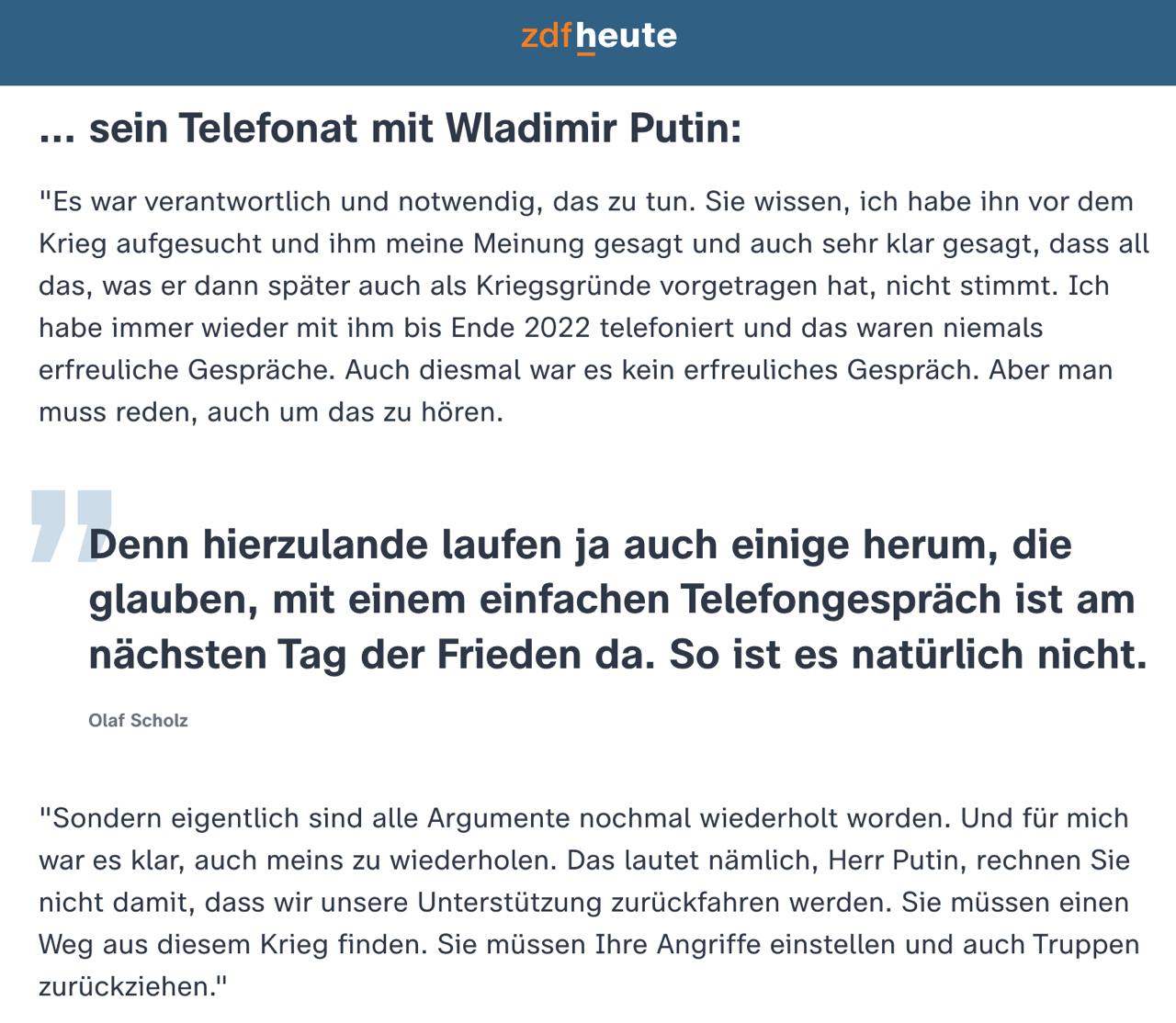 На днях Шольц комментировал этот разговор и говорил, что Путин не изменил своего мнения о войне в Украине.