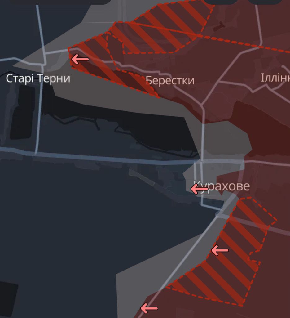 Также согласно карте Deep State бои за Курахово уже идут в ключевой для обороны города деревне Старые Терны.