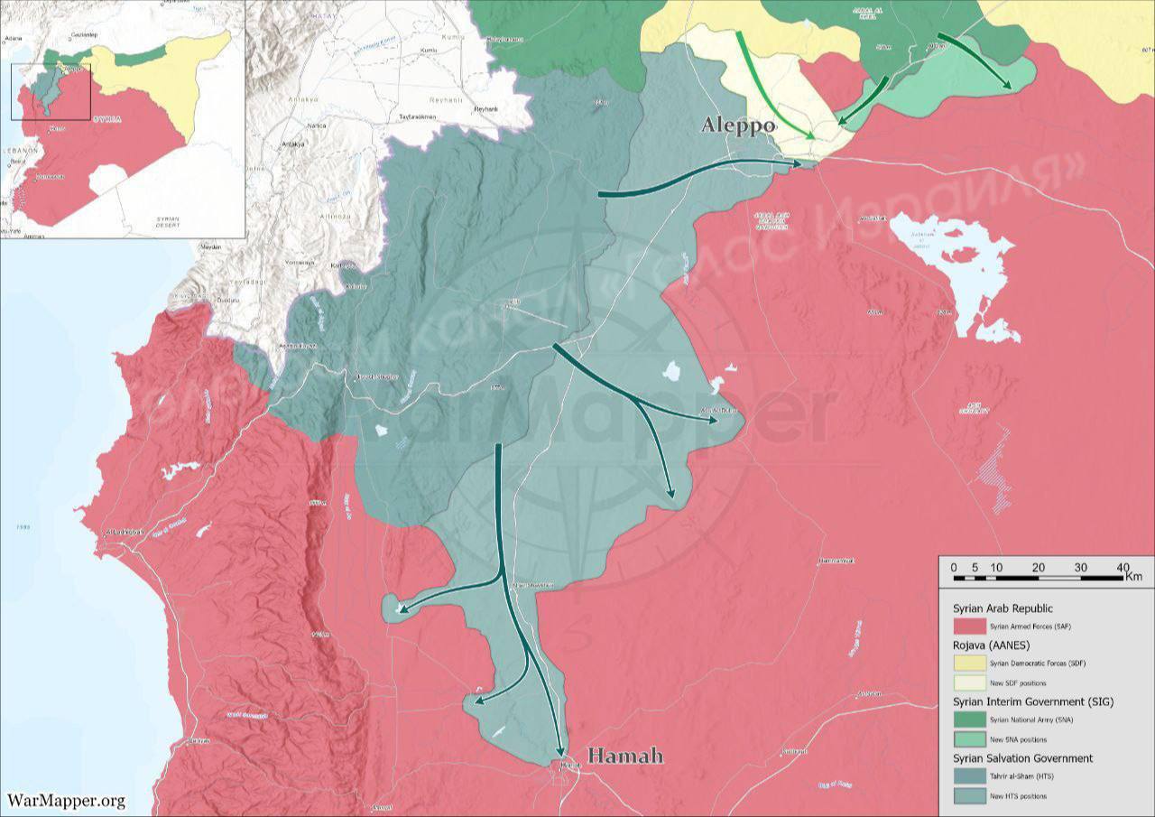 Вчера вечером стало известно, что помимо Алеппо, которое, скорее всего, полностью захвачено, отряды исламистов двинулись на юг - в сторону провинции Хама.
