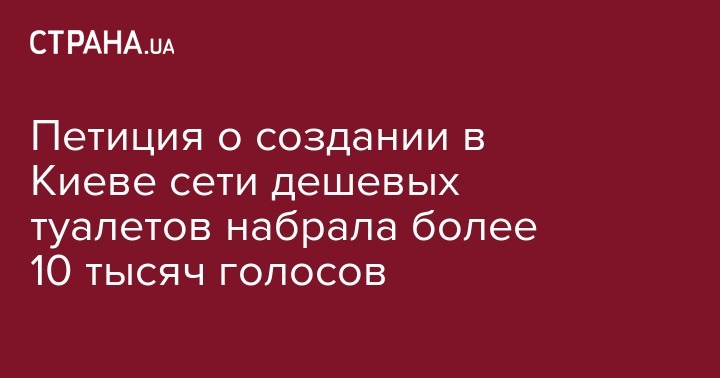 Электронная петиция местных жителей о создании в Киеве сети общественных уборных набрала более 10 тысяч подписей. Это значит, что городские власти теперь обязаны рассмотреть этот вопрос. Об этом сообщается на сайте Киевского городского совета.