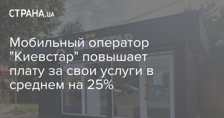 Мобильный оператор "Киевстар" повышает плату за свои услуги в среднем на 25%. Об этом говорится на сайте компании.