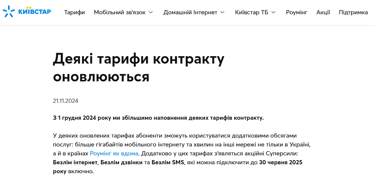 В предыдущий раз "Киевстар" повышал свои тарифы всего полгода назад - в апреле-мае 2024.