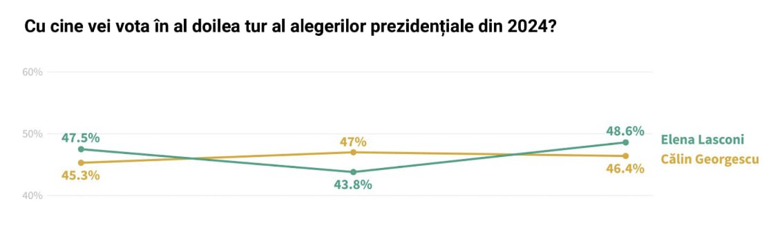 Однако последнее масштабное исследование, состоявшееся перед отменой первого тура, результаты которого опубликовало румынское издание HotNews, показало, что фаворитом во втором туре была проевропейский кандидат Елена Ласкони. Согласно исследованию, Ласкони набирала 48,6%, а Джорджеску только 46,4%. И это заставляет сомневаться в том, что реальным мотивом отмены первого тура было стремление не допустить к власти "пророссийского" кандидата.