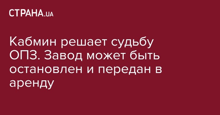 Кабмин решает судьбу ОПЗ. Завод может быть остановлен и передан в аренду