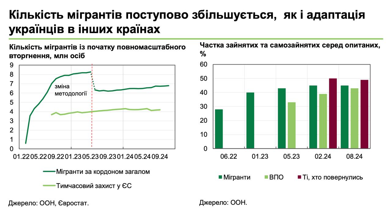 По информации НБУ, количество временно перемещенных лиц при этом в октябре стабилизировалось на показателе 3,6 миллиона человек. Количество вернувшихся на постоянные места жительства с начала полномасштабного вторжения составило 4,3 миллиона человек.
