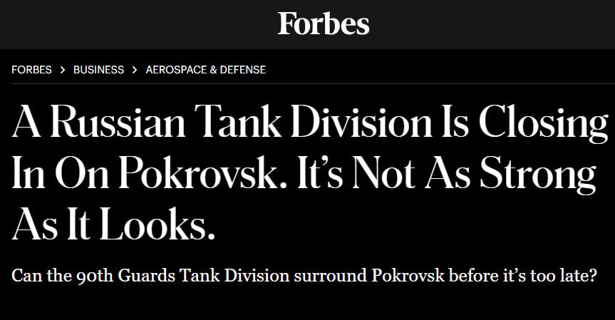 Перед этим журнал Forbes писал, что войска РФ начали отрезать Покровск, им осталось около 5 км до города.
