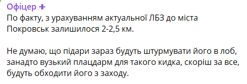 При этом он не считает, что россияне сейчас будут штурмовать Покровск "в лоб".