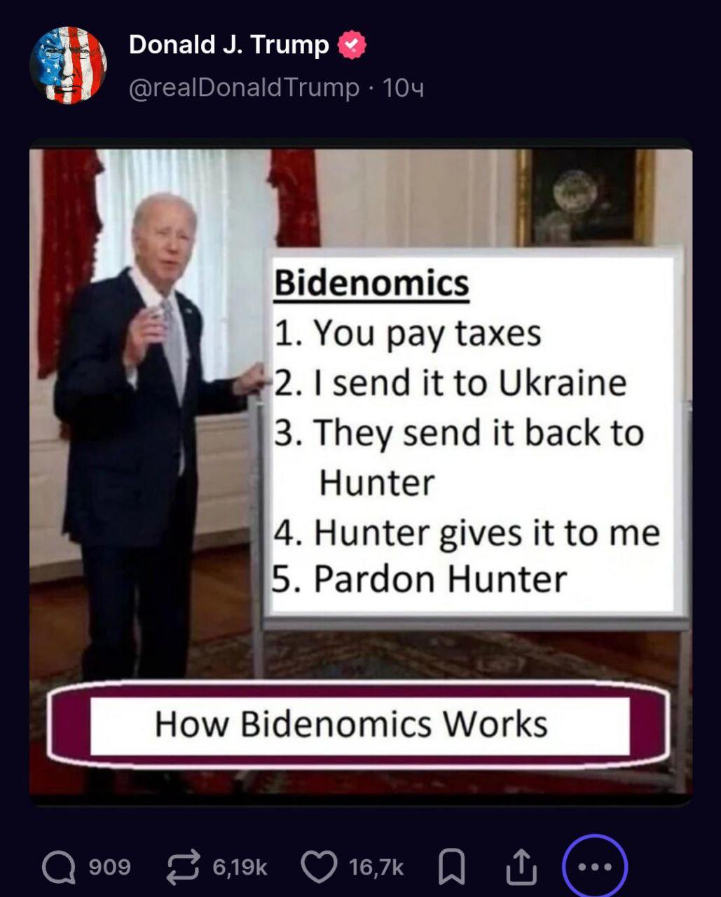 Трамп опубликовал в соцсетях пост о том, "как работает Байденомика".
