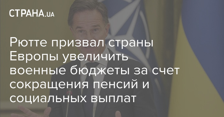 Генеральный секретарь НАТО Марк Рютте призвал страны Европы увеличить свои военные бюджеты за счет сокращения расходов на пенсии и соцвыплаты.