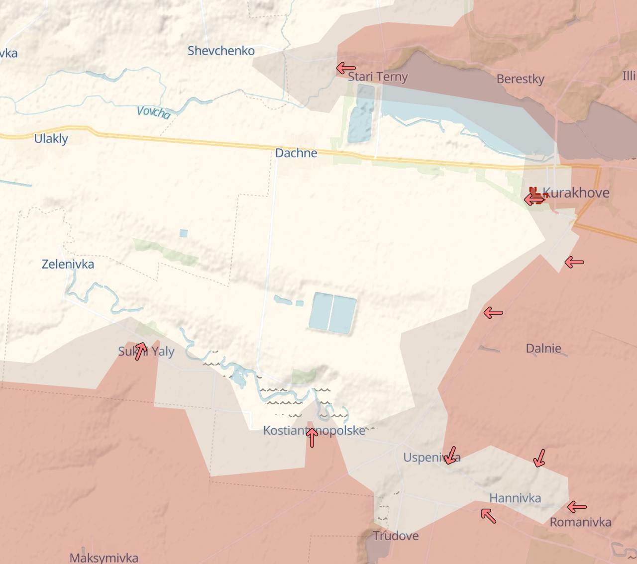 Также, по его словам, россияне вошли в Зеленовку к юго-западу от Курахово, откуда чуть более трех километров до трассы со стороны Запорожья. Если россияне закрепятся в Зеленовке, «то Кураховский котел будет скоро», предполагает «Мучной».
