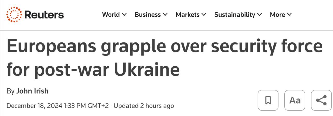 "Даже если бы существовала гарантия безопасности НАТО, откуда бы взялся импульс на местах? Он был бы европейским, поэтому наши армейские руководители уже готовят планы для рассмотрения европейскими лидерами в будущем", — заявил Reuters высокопоставленный европейский чиновник.