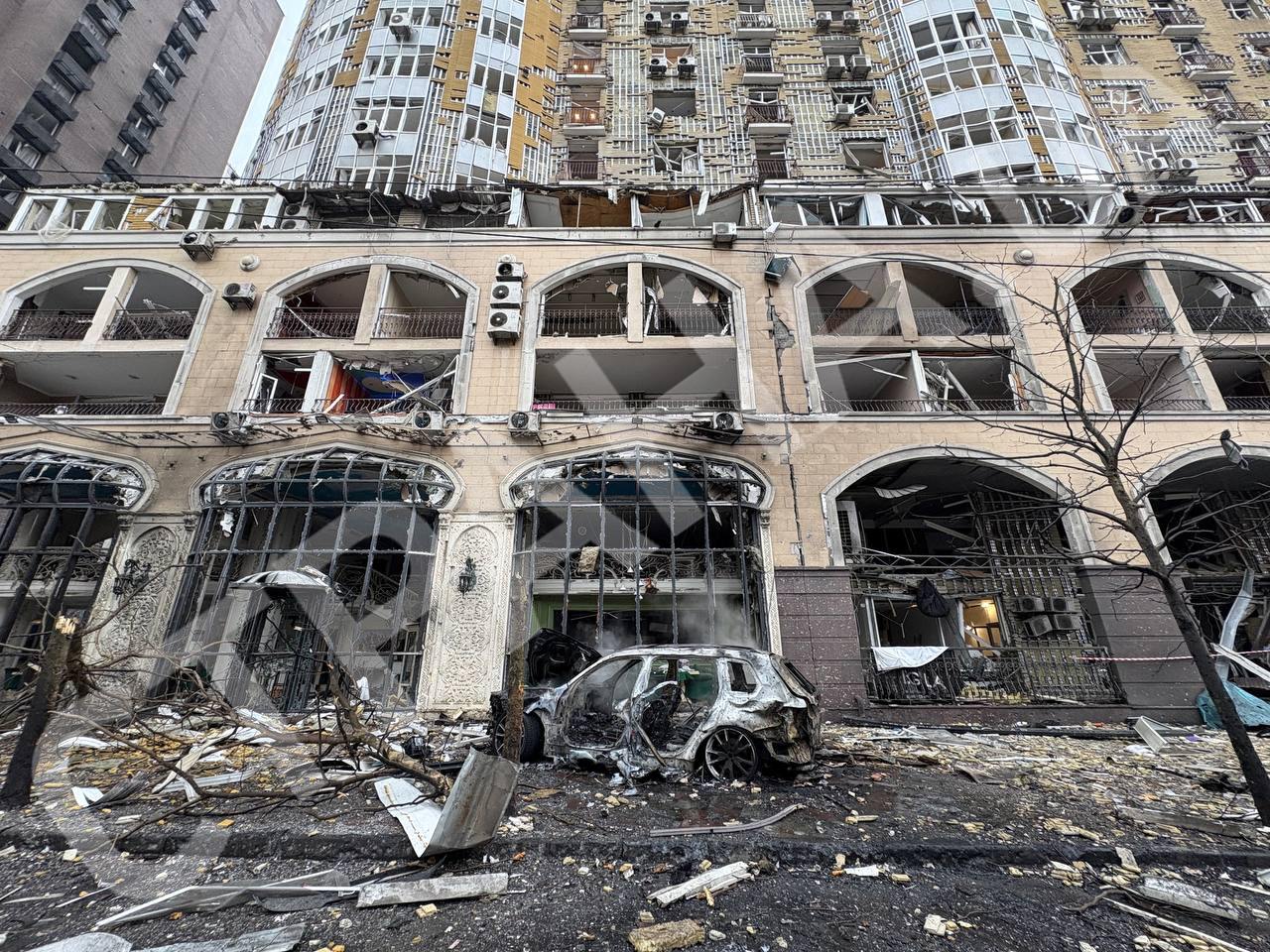 Последствия ракетной атаки в гостинице Holiday Kyiv, которая расположена в БЦ "Торонто".