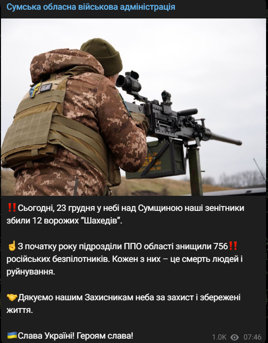 08:05 Сегодня утром в Сумской области силами ПВО были уничтожены 12 "Шахедов", сообщает ОВА.