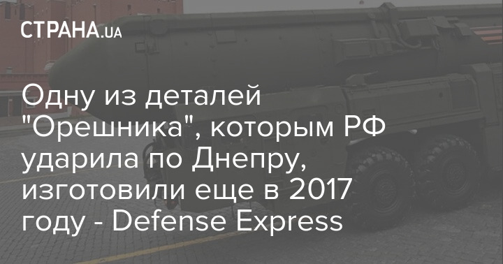 На одной из деталей "Орешника", которым Россия 21 ноября ударила по Днепру, нашли серийный номер и дату производства - 12 апреля 2017 года.